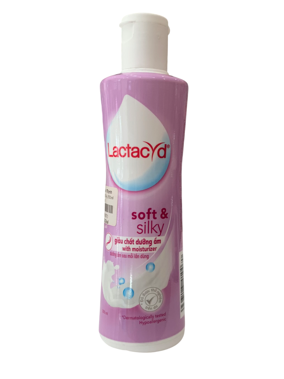 Dung dịch vệ sinh phụ nữ hằng ngày Lactacyd Soft & Silky 250ml giúp dưỡng ẩm cho da mềm mịn với công thức giàu chất dưỡng ẩm. Sản phẩm đã được kiểm nghiệm da liễu, an toàn cho da nhạy cảm.