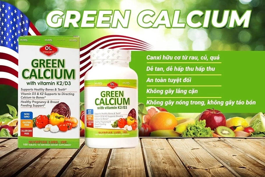 Green Calcium là dòng canxi gluconate giúp bổ sung canxi hữu cơ cho bà bầu hoặc người có nhu cầu bổ sung canxi được ưa chuộng tại và được các chuyên gia, bác sĩ khuyên dùng bởi nó không gây nóng trong và lắng cặn. Ngoài ra, Green Calcium còn bổ sung thêm vitamin D3, K2, magie giúp cho quá trình hấp thu canxi được tốt hơn.
