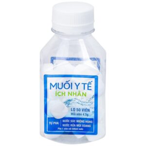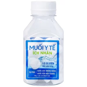 Muối y tế Ích Nhân 50 viên 4.5g là muối Natri 0,9% (nước muối sinh lý) dạng viên rất tiện lợi, dùng pha dung dịch rửa mũi, súc họng, làm sạch dịch mũi, mủ…