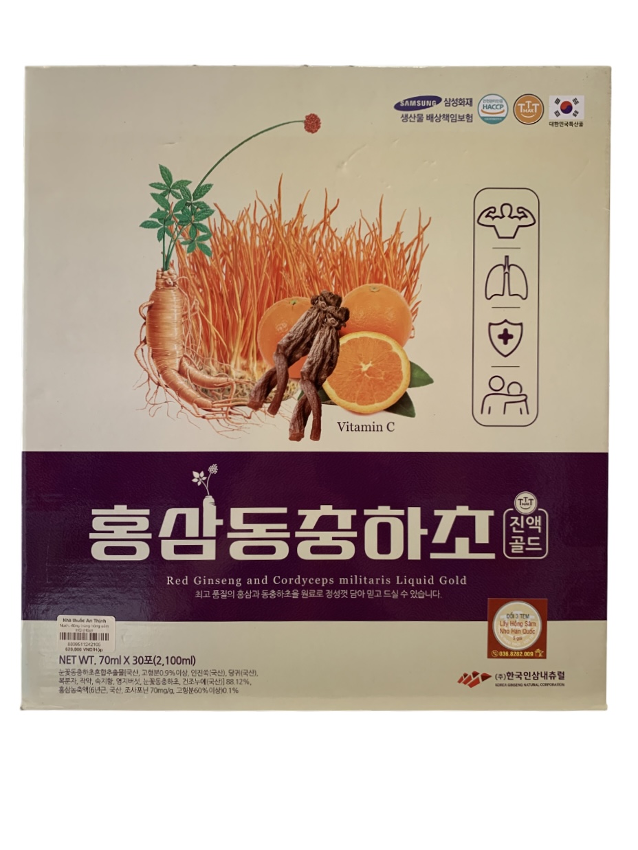 Chiết xuất đông trùng hạ thảo hoa tuyết hàm lượng chất rắn 0,9% trở lên, (Nấm linh chi, Đương quy, Rễ bạch chỉ, Quả mâm xôi, Hoa mẫu đơn, Hoàng Liên, đông trùng hạ thảo hoa tuyết, tăm khô) 88,12%, xi-rô fructose cao, glucose tinh chế, L-arginine, Táo tàu cô đặc (hàm lượng chất rẵn 60%), Lưu huỳnh cô đặc (hàm lượng chất rắn 60%), axit citric, Hồng sâm cô đặc 6 năm tuổi, saponin thô 70mg/g, Linh chi cô đặc (60% chất rắn), Cây cỏ ngọt được xử lý bằng enzym, Vitamin C.