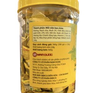Đường, mạch nha, muối 2%, chất điều chỉnh độ acid (330, 270, 325, 500 (ii)), nước cốt chanh 1%, hương liệu chanh tổng hợp, vitamin C, tinh dầu bạc hà, màu thực phẩm tổng hợp (160a(i)) vừa đủ 2,8g
