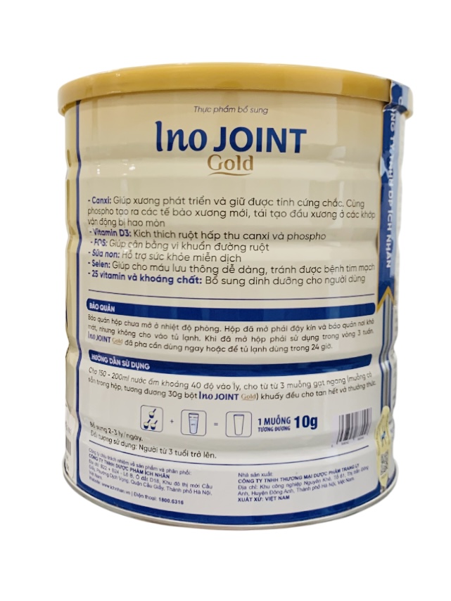 Cho 150 – 200ml nước ấm khoảng 40 độ vào ly, cho từ từ 3 muỗng gạt ngang (muỗng có sẵn trong hộp, tương đương 30g bột Inojoint Gold khuấy đều cho tan hết và thưởng thức.