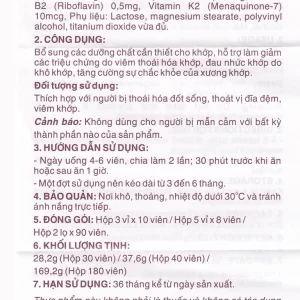 Viên uống Cốt Thoái Vương có tác dụng bổ sung dưỡng chất cần thiết cho khớp, hỗ trợ làm giảm các triệu chứng do viêm thoái hóa khớp, đau nhức khớp do khô khớp, tăng cường sự chắc khỏe của xương khớp.