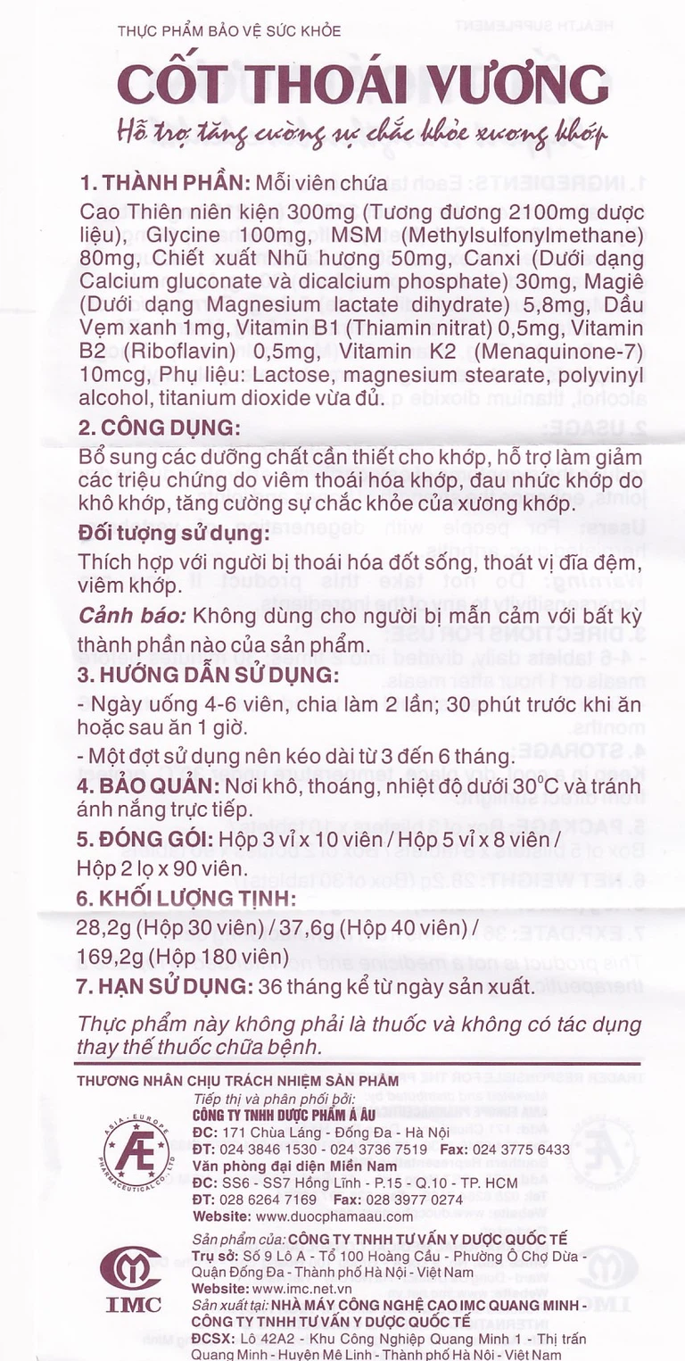 Viên uống Cốt Thoái Vương – Hộp 30 viên