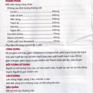 Hỗ trợ giảm mỡ máu – Giảm mỡ gan.