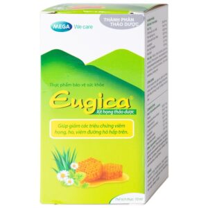 Xịt họng thảo dược Eugica Mega We Care hỗ trợ nhuận phế, giảm ho, giảm các triệu chứng viêm họng, viêm đường hô hấp trên, giảm đau rát họng, ho gió, ho khan, ho do dị ứng.
